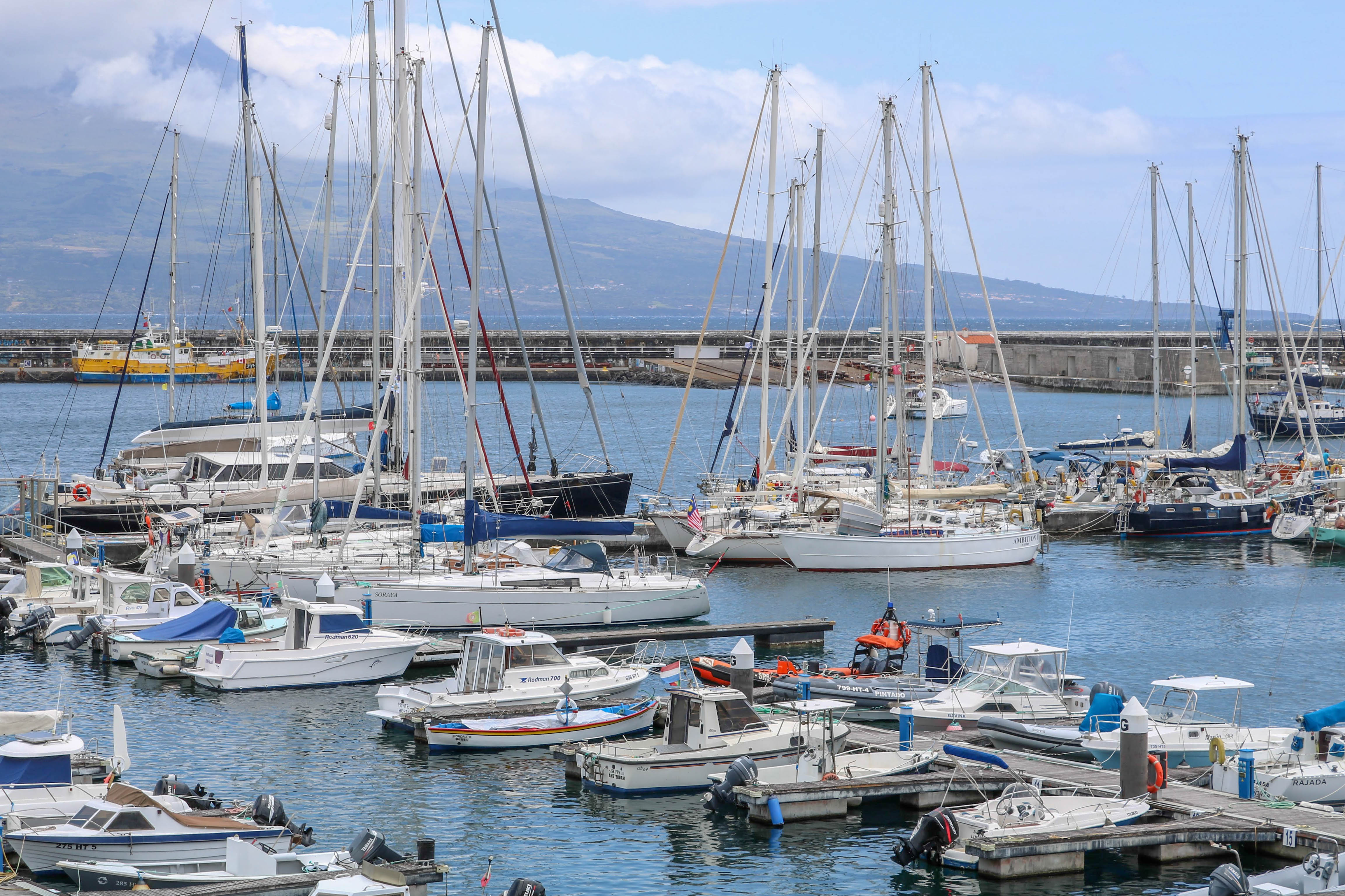 | Dimanche 20.05.2018, 11:00 UTC | Position: 36 47N / 045 22W 147 nm parcourus, 813 nm to go Vent: E 10 nds.... dans le pif, mais soleil de retour. Finalement nous nous sommes laissé dériver en attendant que le vent ne faiblisse ou ne tourne. Super séance photos avec les magnifiques "fausses méduses" (physalies en parler savant) 14h: Vent NE 5 nds. Nous envoyons le Foc d'artimon comme Spi asymétrique bâbord (c'est pas des bobards!), vitesse max 2 nds...15 nm parcourus en 12h, un record ;-) 2h: Vent O-SO 12 N, nous pouvons reprendre un nav "normale" vers ... Horta sur l'île de Faial. |