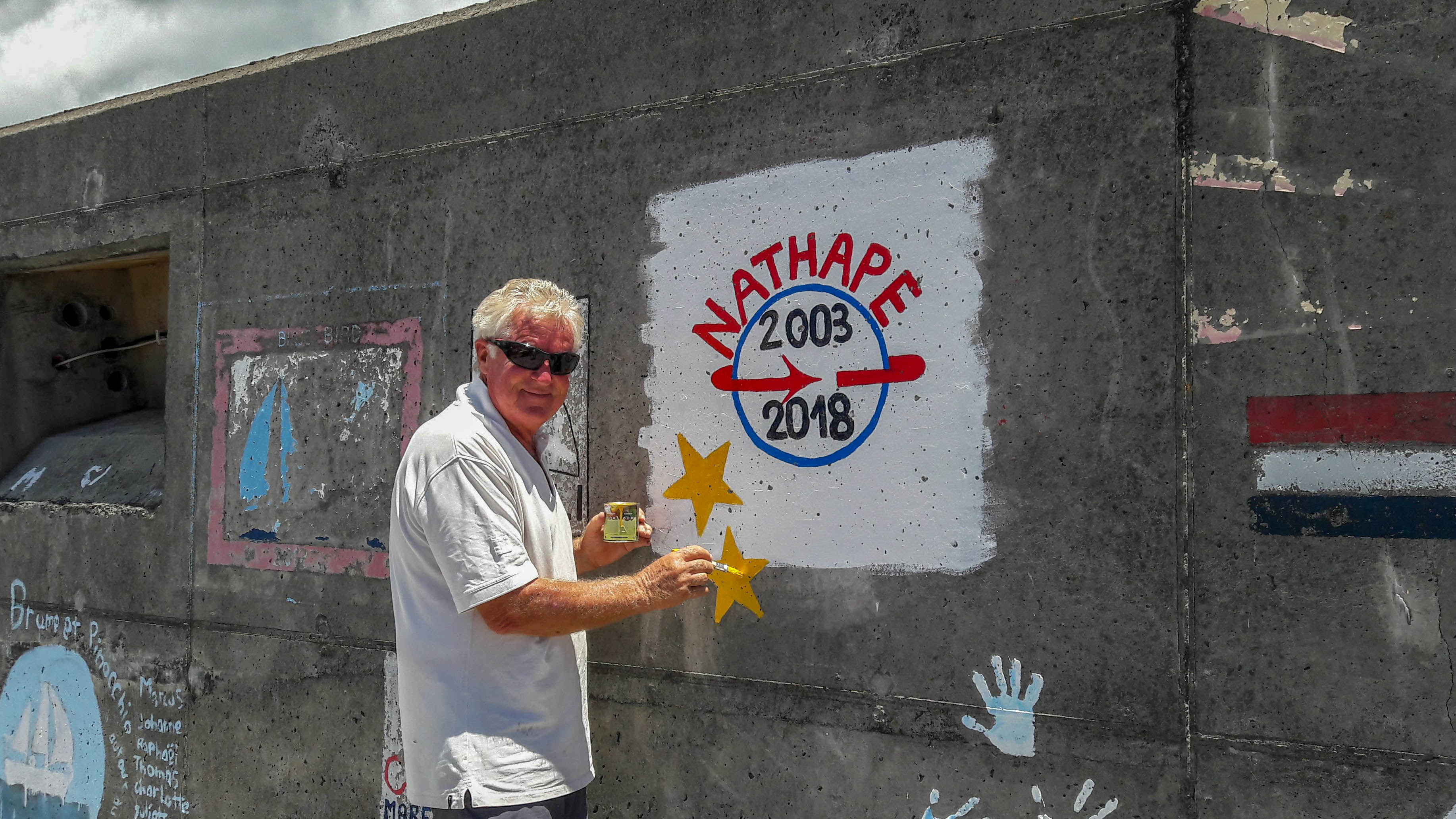 | Mardi 22.07.2018, 11:00 UTC | Position: 33 58N / 041 02W, 178 nm parcourus, 606 nm to go Lundi et mardi seront les meilleurs jours de cette traversée, "Segeln von der Schokolade Seite", au soleil de surcroît. Nathape file comme sur des rails vers les Açores, 360 nm parcourus en 48h. Merci aux bonnes étoiles de naissance de Titi et Xavier ... SY AXIOM, Grossbritannien, 20x6m , 8 nm plus au Nord, même cap vers Horta. Anniversaire Xavier |